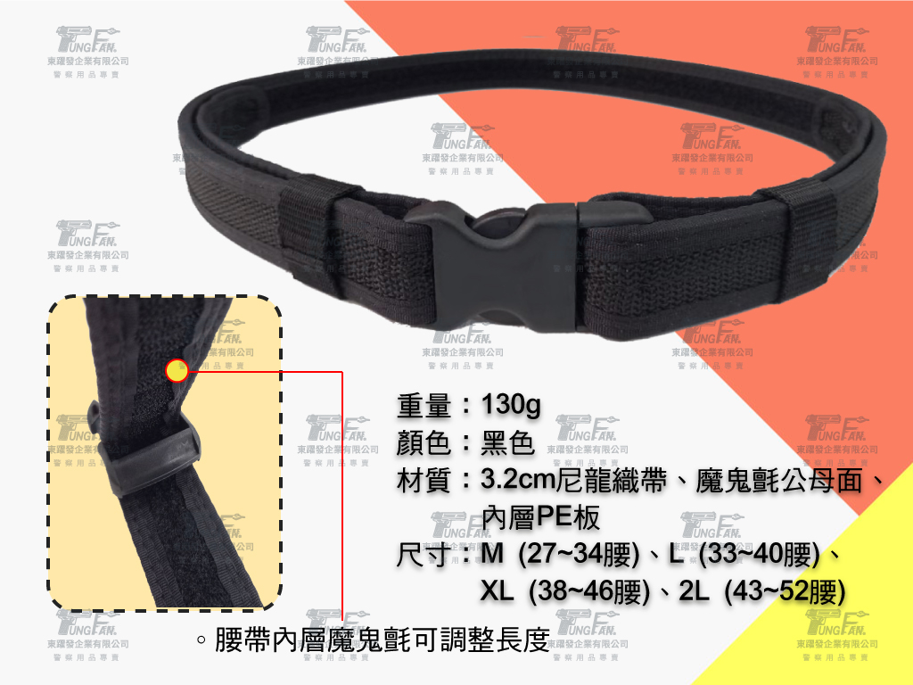 - 尺寸:M (27~34腰)、L (33~40腰)、XL (38~46腰)、2L (43~52腰)