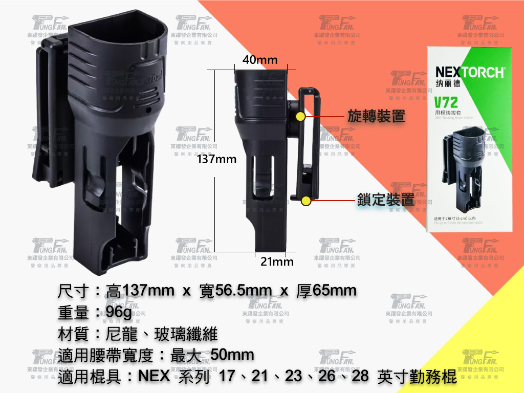 • 適用棍具:NEX 系列 17、21、23、26、28 英寸勤務棍